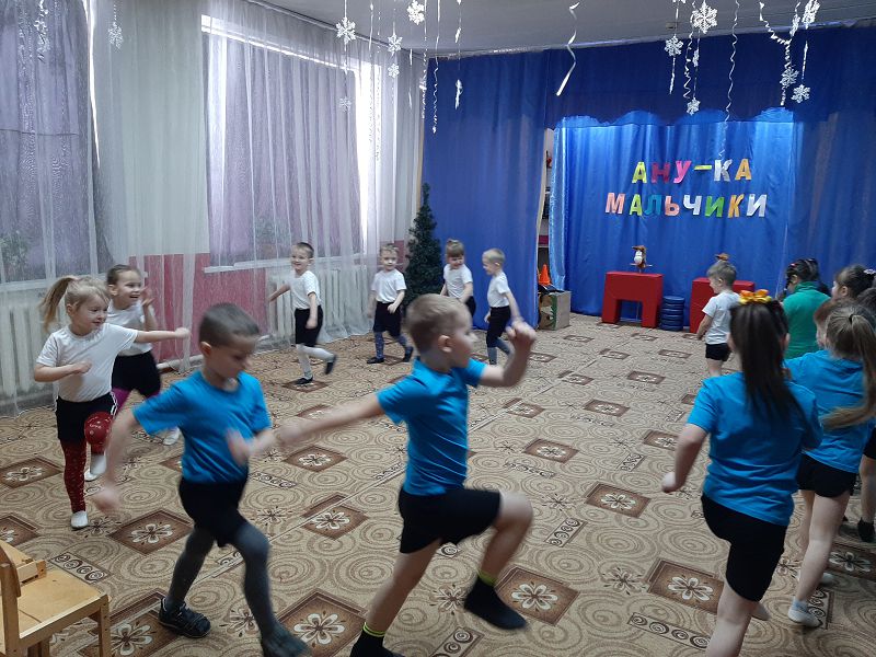 В веселой эстафетной борьбе ребята выполняли задания на ловкость, смелость, быстроту, силу. Все соревнования проходили под веселую, радостную и задорную музыку, при постоянной поддержке болельщиц девочек.