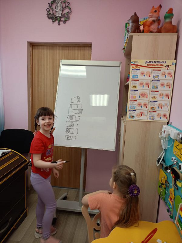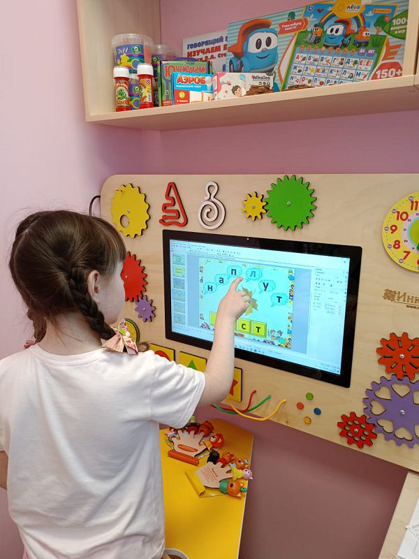 Происходит развитие мелкой моторики рук, моторной ловкости и сноровки. Активно на занятиях применяются нейропсихологические упражнения, которые помогают развитию психических процессов (памяти, внимания, мышления, речи), эмоционально-волевой сферы ребенка, через движения. На занятиях используется планшет, на котором дети в игровой форме выполняют задания закрепляя свою речь.