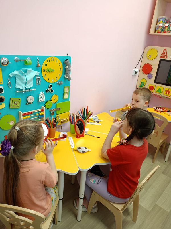 На занятиях с логопедом дети в игровой форме развивают дыхание.