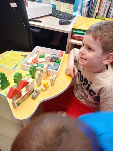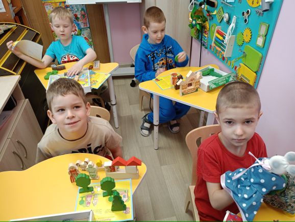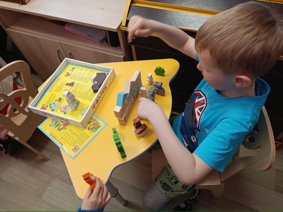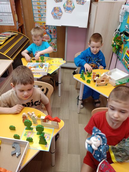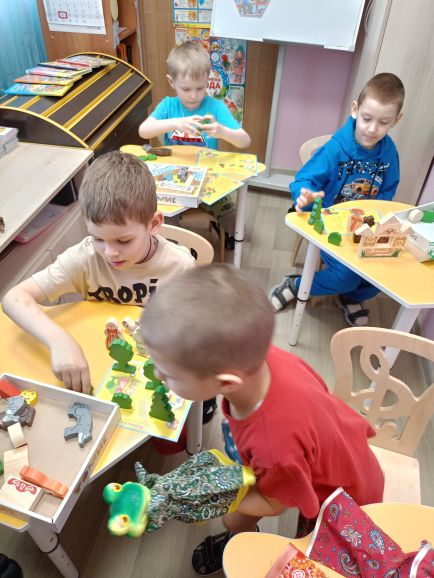 С деревянных кубиков ребята составили сказку, играли в кукольный театр.