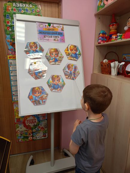 В честь праздника ребята рассмотрели разные книги: сказки, рассказы, энциклопедии и др. Поиграли в игру "Из какой я сказки", ребята называли сказки, героев из сказок, путешествовали по страницам любимых книг: рассматривали иллюстрации, с интересом угадывали сказочную викторину, провели беседу о правилах бережного отношения к ним.