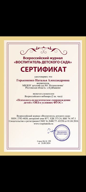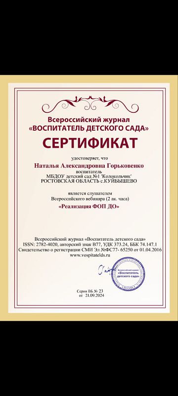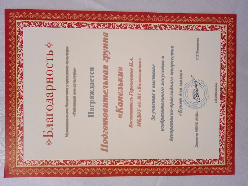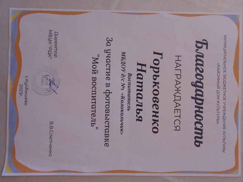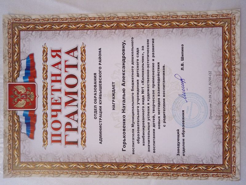 Наши достижения, успехи 25.09.2024 View the embedded image gallery online at: https://www.kolokol.kuib-obr.ru/index.php/pedagogam/vospitatel-gorkovenko-natalya-aleksandrovna/dostizheniya-pedagoga-i-detej/1314-nashi-dostizheniya-uspekhi#sigProIdfa951d478b