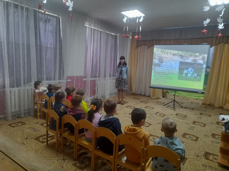 В рамках празднования Международного дня семьи в ДОУ прошло занятие «Моя дружная семья». Дети с удовольствием читали стихи, отгадывали загадки, играли в игры, просмотрели презентацию. В проделанной работе мы постарались показать значимую роль семьи для каждого человека, содействие пониманию родителями и детьми семейных ценностей, воспитание ответственного и радушного отношения к семье.