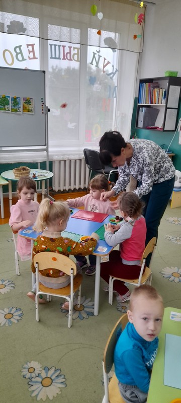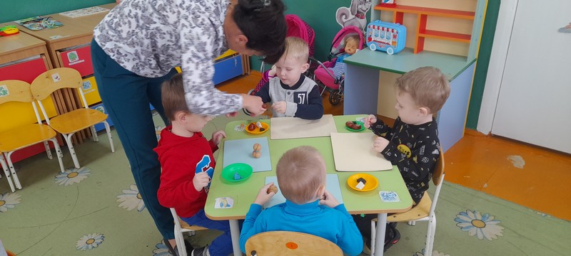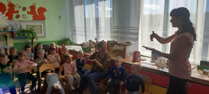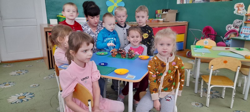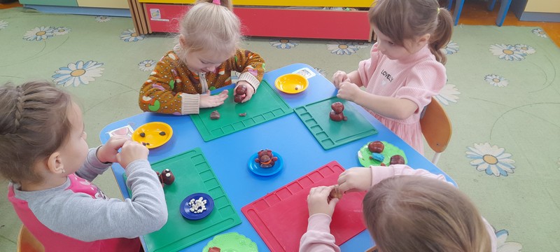 28.09.2022 в разновозрастной группе №2 было проведено тематическое занятие «Друзья для Мишки». Целью занятия было познакомить детей с дарами осени (орехами, каштанами, шишками); способствовать развитию мелкой моторики кисти руки; воспитывать дружеские отношения в коллективе.