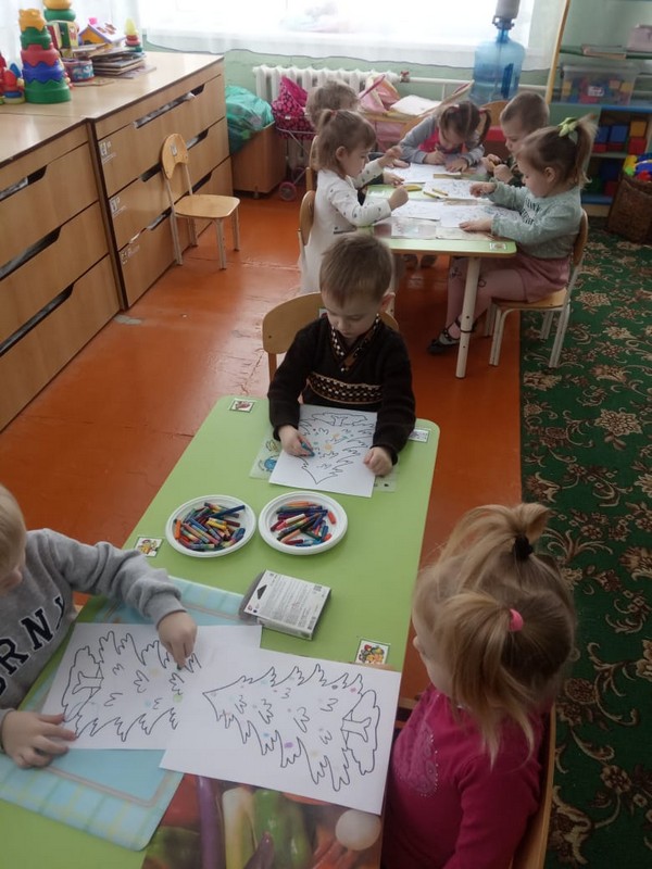 3 февраля 2022г. в разновозрастной группе №1 воспитатель вместе детьми рисовали огоньки на елочке (занятие «Украсим нашу елку»). Цель занятия: закрепить знания о цвете, умение изображать предметы круглой формы, развивать умение рисовать карандашом, воспитывать желание использовать в рисовании разнообразные цвета, учить любоваться готовой работой.