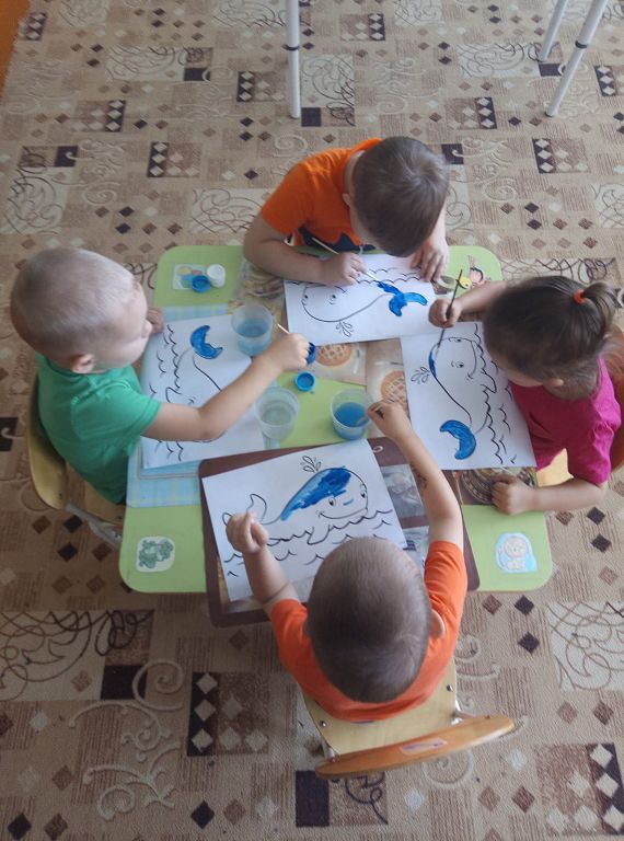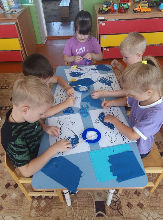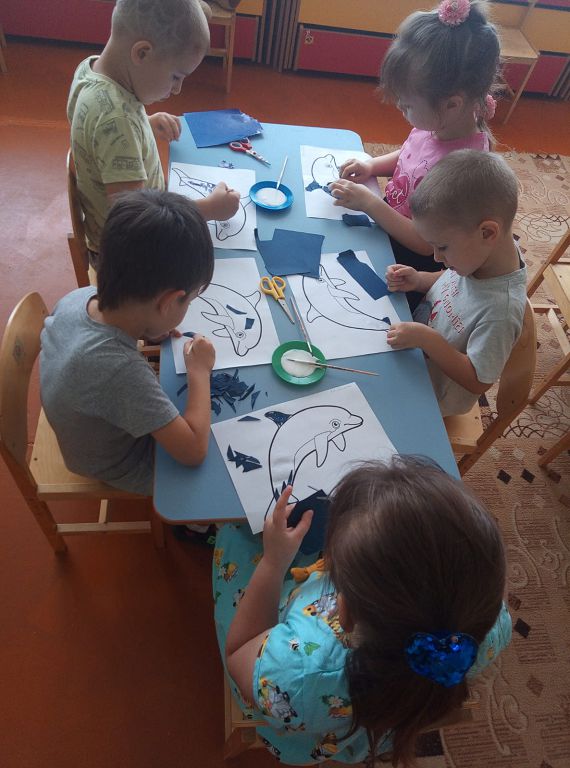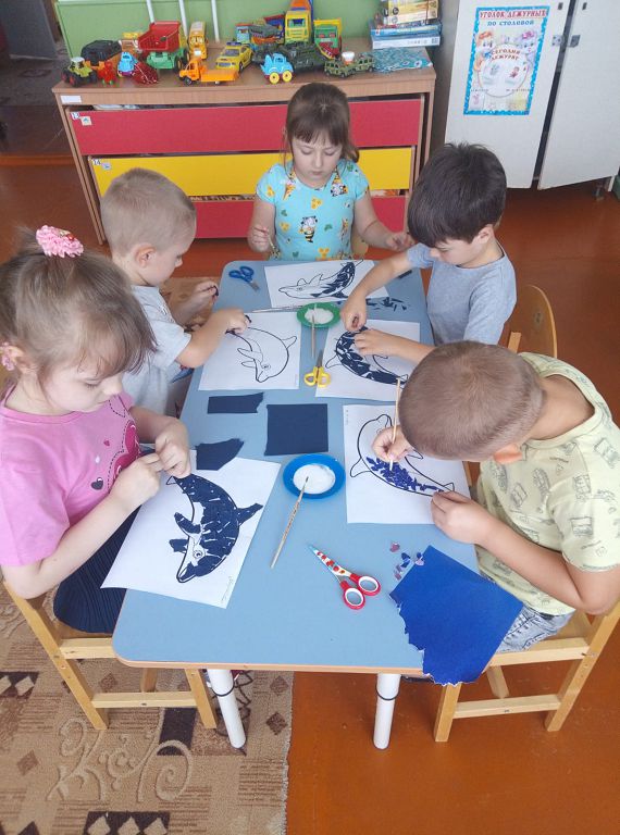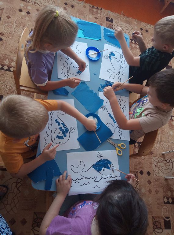 В этот день экологи и неравнодушные люди всей Земли стараются напомнить, что человечество может потерять уникальные виды животных, без которых мир станет намного беднее. Воспитанники МБДОУ №1 д/с «Колокольчик» не остались равнодушными к исчезновению китов и дельфинов. Посмотрели презентацию о жизни морских обитателей, играли в игры: лото «Обитатели морей», домино «Морское»; подвижная игра «Море волнуется», «Спаси дельфинов», читали художественную литературу: Е. Чарушин «Кит», С. Сахарнов «Как лечат дельфинов», Р. Киплинг «Откуда у кита такая глотка», Н. Сладков «Дельфинья дружба». В творческой мастерской дети рисовали китов, изготовили методом обрыва. Итогом Всемирного дня китов и дельфинов стала аппликация и раскрашивание китов и дельфинов: «Давайте сохраним китов и дельфинов вместе!».