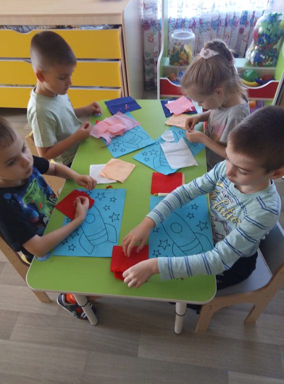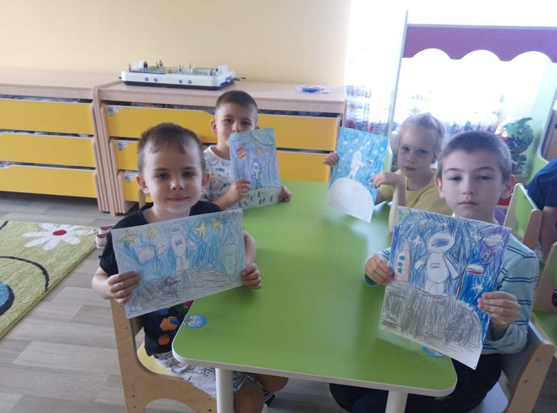 В преддверии этой знаменательной даты в МБДОУ № 1 д/с «Колокольчик» в подготовительной группе прошел проект "Космос – это интересно". В эти дни ребята знакомились с информацией о космосе, космонавтах, первом полете человека в космос, играли в д/и " Планеты по порядку", "Вредная и полезная еда", "Подбери ракету к планете", «Космонавты» читали фантастические сказки о космосе, делали космические аппликации. Рисовали космонавтов и первых собак, которые полетели в космос «Белку и Стрелку».
