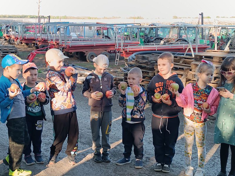 В завершение экскурсии по яблоневому саду дошколят угостили сортами яблок «Фуджи» и «Гала». Ребята узнали об уходе и выращивании фруктовых деревьев.