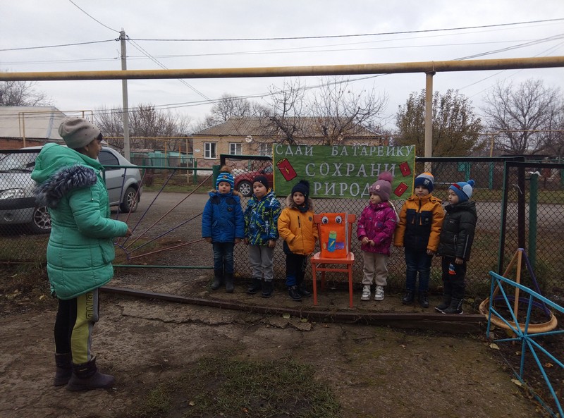 Разновозрастная группа №4 «Эколята» не смогла остаться равнодушной к спасению живых существ, была проведана акция «Сдай батарейку – сохрани природу». Цель акции: формирование экологической культуры дошкольников, стремление беречь природу. В рамках экологической акции в МБДОУ №1 д/с «Колокольчик» был установлен контейнер для сбора и дальнейшей утилизации отработанных батареек. В акции приняли участие ребята всех возрастных групп и их родители. Дети раздали памятки родителям «Утилизация батареек»