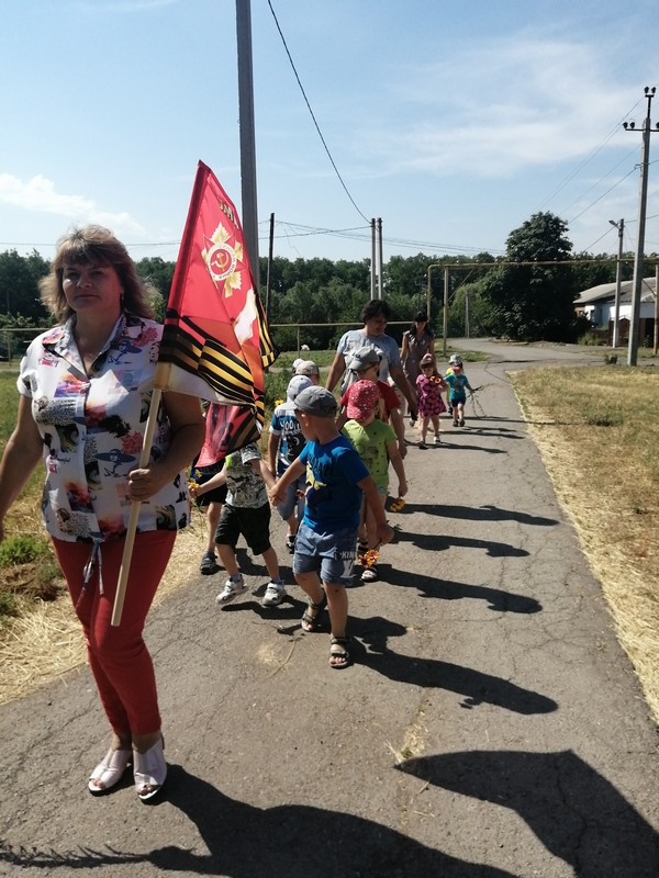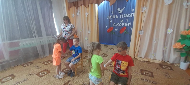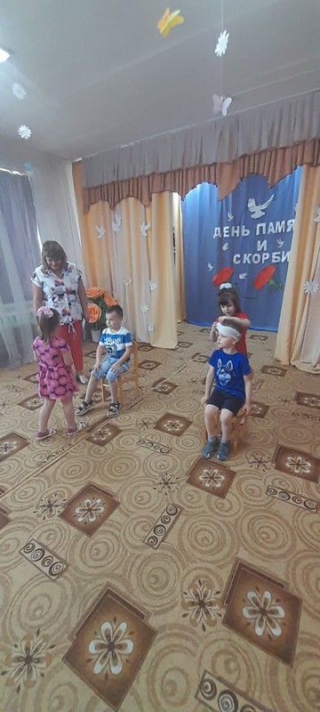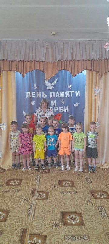 Воспитатели проводили тематические занятия и беседы чтобы дети знали, как мы скорбим о тех, кто принял на себя первый удар наступлений фашистской Германии, о тех, кто сражался на фронтах и партизанил в отрядах, о тех, кто героически работал в тылу и тех, кто был угнан в Германию и замучен в концлагерях, — всех, кто видел и осознал ужасы фашизма.