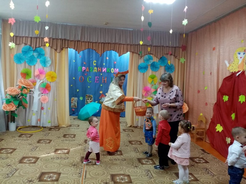 Традиционно, в октябре, в МБДОУ д/с №1 «Колокольчик» проходят осенние праздники. На дворе пасмурно и холодно, не хватает солнечного тепла, а у нас в музыкальном зале царила теплая, доброжелательная атмосфера. В гости к ребятам пришла осень-красавица. Дети с нетерпением ждали встречи с осенью. На празднике дети пели песни, исполняли танцы, играли в веселые игры, отгадывали осенние загадки, рассказывали стихи. А самым ярким и запоминающимся эпизодом стал сюрпризный момент – корзина с гостинцами от осени для всех ребят.