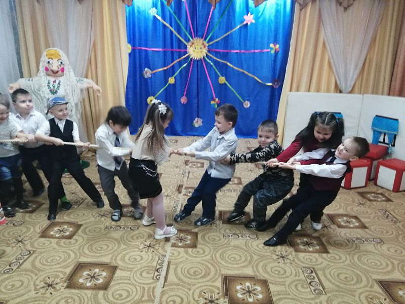 В гости к детям приходила красавица Зима, Весна и Масленица. Как положено на празднике, дети от души веселились: водили хоровод, играли в русские народные игры, пели, плясали и рассказывали стихи. Веселые конкурсы не давали скучать никому! В заключение они с удовольствием поедали вкусные и пышные блины. Все с радостью проводили Масленицу и попрощались с ней до следующего года.