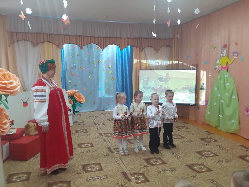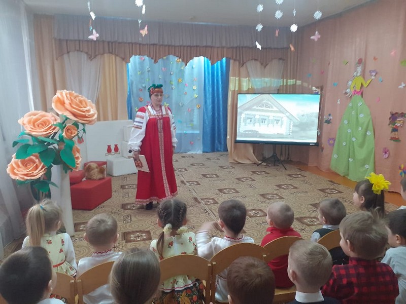 В МБДОУ д/с №1 «Колокольчик» состоялось веселое и интересное развлечение " В гостях у бабушки Арины ". Развлечение проводилось с целью продолжать знакомить детей с бытом русского народа, крестьянской избой.