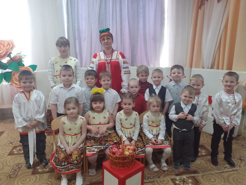 В конце праздника бабушка угостила всех ребят вкусными и румяными яблоками. Детям очень понравилось в гостях у бабушки Арины и с хорошим настроением отправились обратно в группу, не забыв пригласить бабушку Арину в гости!