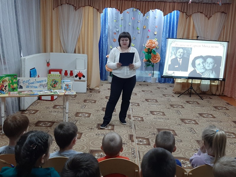В этот день в МБДОУ д/с №1 «Колокольчик» , прошёл тематический день, посвящённый 110-летию русского писателя, поэта, публициста, автора государственных гимнов СССР и России, Сергея Владимировича Михалкова.
