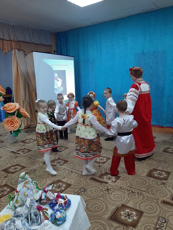 Ребята узнали, что с давних времен тряпичная кукла была любимицей русского народа. Играя в куклы, ребёнок учился вести домашнее хозяйство, шить, одеваться и многому другому, что пригодиться в жизни. Дошкольники с интересом слушали рассказ о русских народных традициях, историю создания народных кукол, узнали секреты изготовления тряпичных кукол. Ребята водили хоровод под русскую народную мелодию, разучили русскую народную игру «У Маланьи, у старушки», с интересом отгадывали загадки, просмотрели презентацию «Народные тряпичные куклы». Была проведена предварительная работа: беседа «Откуда берутся игрушки», чтение сказки «Василиса Премудрая».