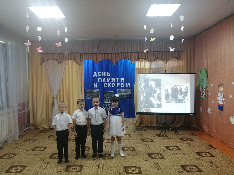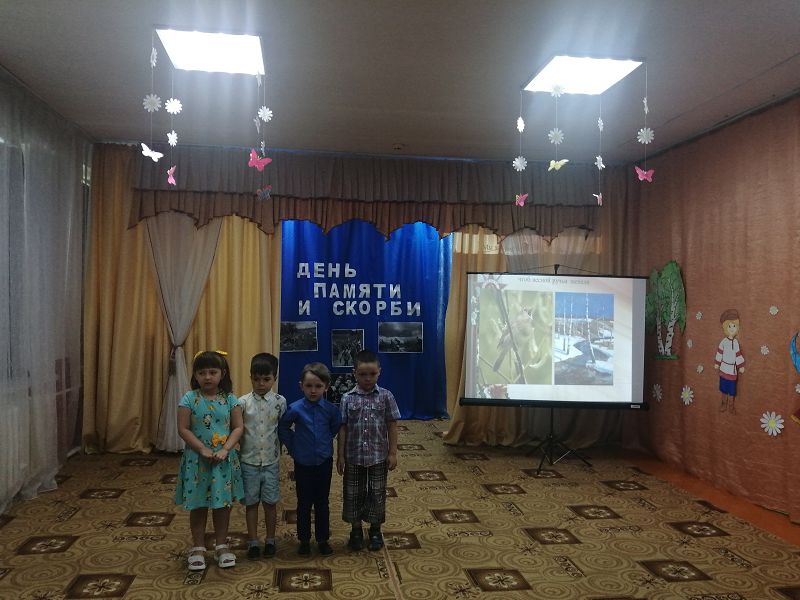 В МБДОУ д/с №1 «Колокольчик» тоже прошел День памяти и скорби, посвященный началу Великой Отечественной войны, о вероломном нападении фашистских войск, о долгих и тяжелых годах войны В исполнении детей звучали стихи и песни, так же девочки исполнили трогательный танец. После мероприятия дошкольники и воспитатели совместно с Свободненским сельским клубом стали участниками митинга «Мы помним!», которое прошло у мемориала. Участники митинга почтили память всех не вернувшихся с той страшной войны минутой молчания, возложили цветы к мемориалу и вместе со взрослыми приняли участие в акции «свеча памяти», как символ скорби и вечной памяти о наших соотечественниках, погибших в годы Великой Отечественной войны.