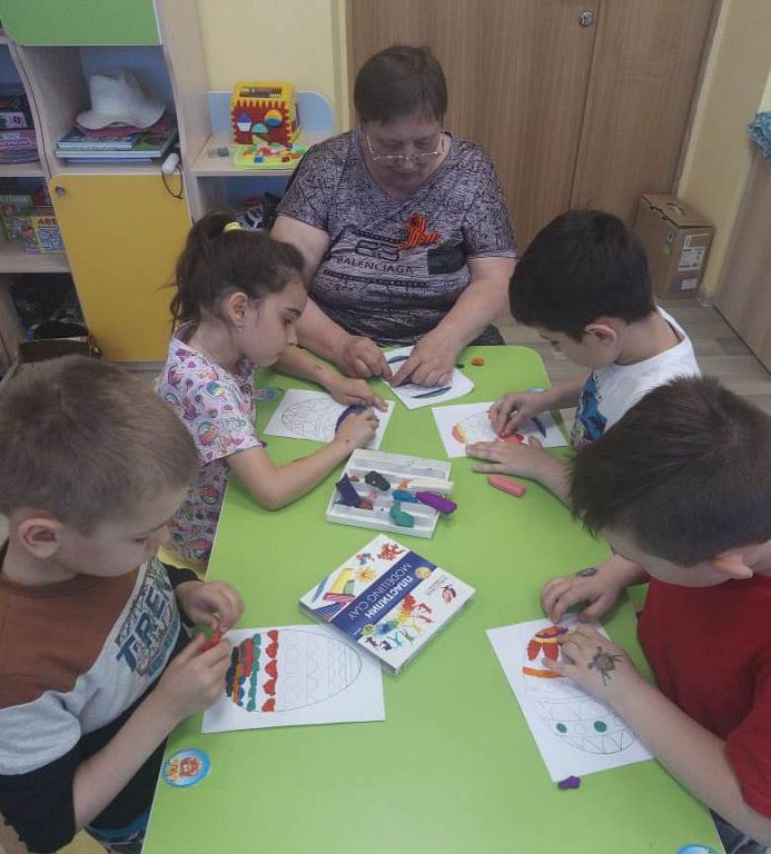 В заключении мероприятия воспитатель Кудрявцева А.А. провела мастер-класс «Символ возрождения». По-домашнему уютно и душевно ребята вместе с библиотекарями с помощью пластилина расписывали яйца. Мероприятие прошло в атмосфере добра, понимания, уважения к традиционным праздникам.
