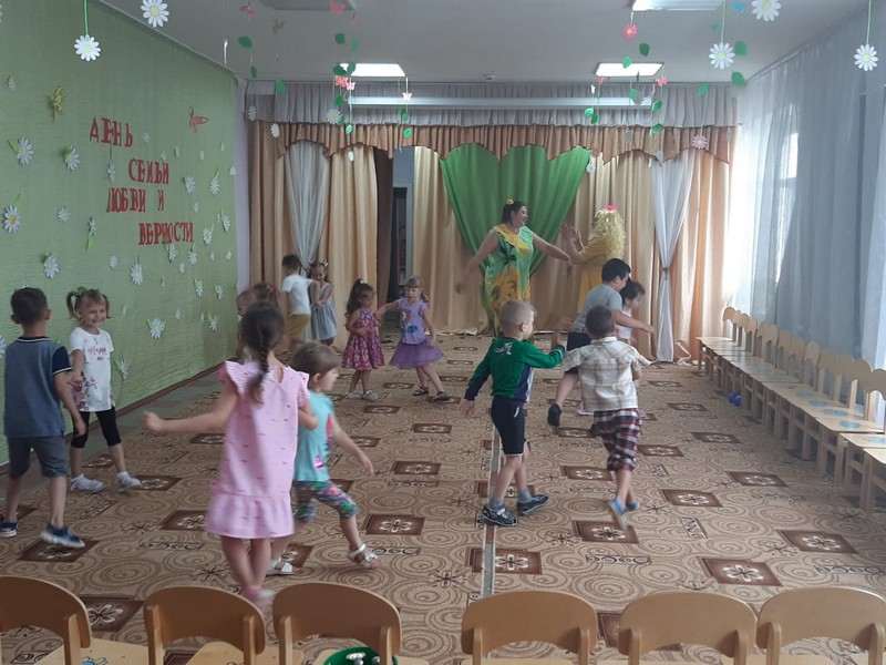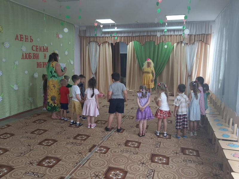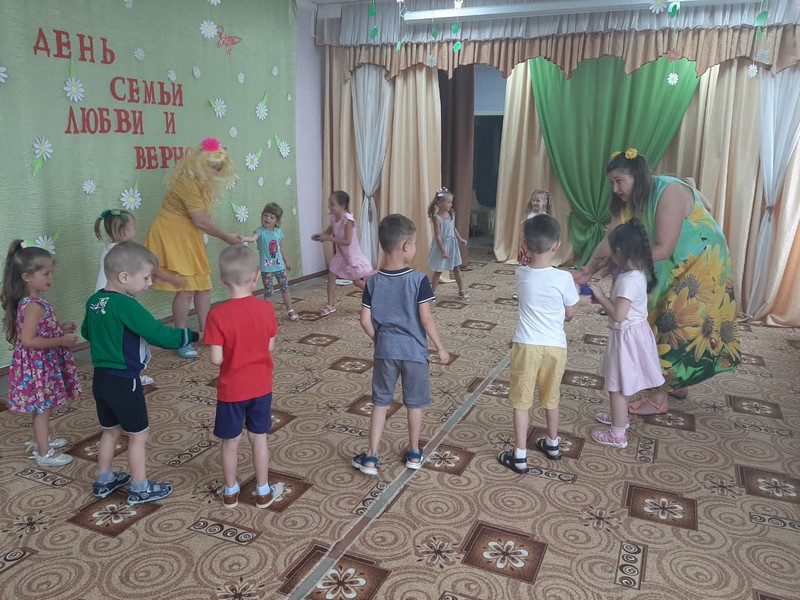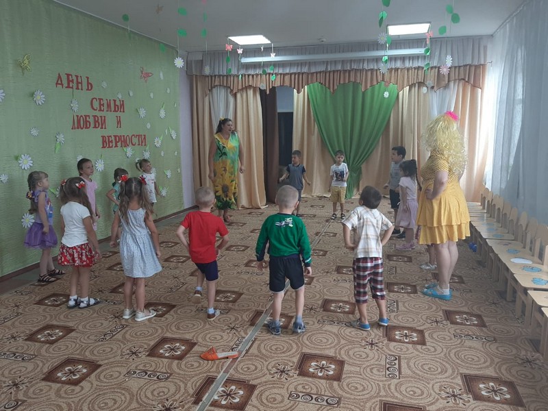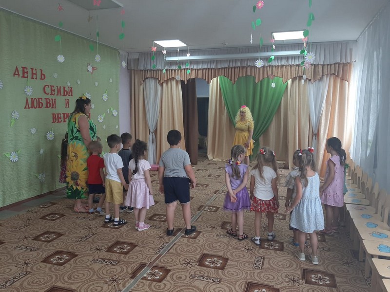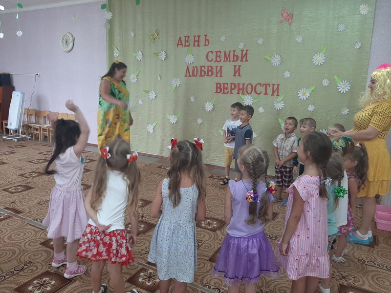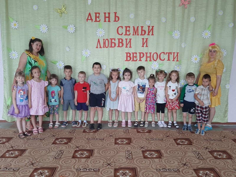 Воспитатель знакомил детей с легендой о жизни князя Петра и травнице Февронии, провели с детьми тематические беседы с показом презентаций, разучивали с детьми пословицы, поговорки, загадки о семье, рассказали детям о важности и необходимости семьи. Все, что ребенок получает в семье — любовь, заботу, внимание, он непременно пронесет через всю свою жизнь. Также дети самостоятельно приготовили открытки с символом праздника – ромашкой, для родителей, ведь символом Дня семьи, любви и верности является ромашка — самый известный и самый распространённый в России цветок.