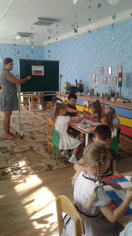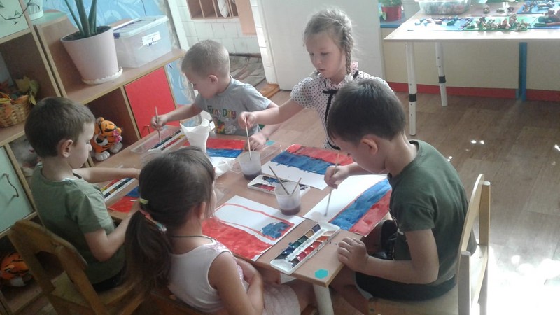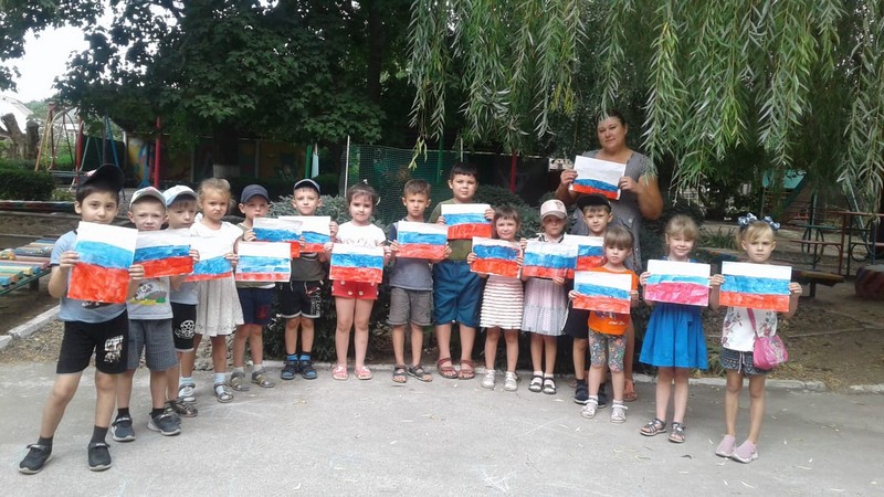В этот день в детском саду прошло тематическое занятие «День флага», на котором ребята узнали об истории появления Российского флага и его значимости для нашего государства. На прогулке дети нарисовали флаг мелками на асфальте.