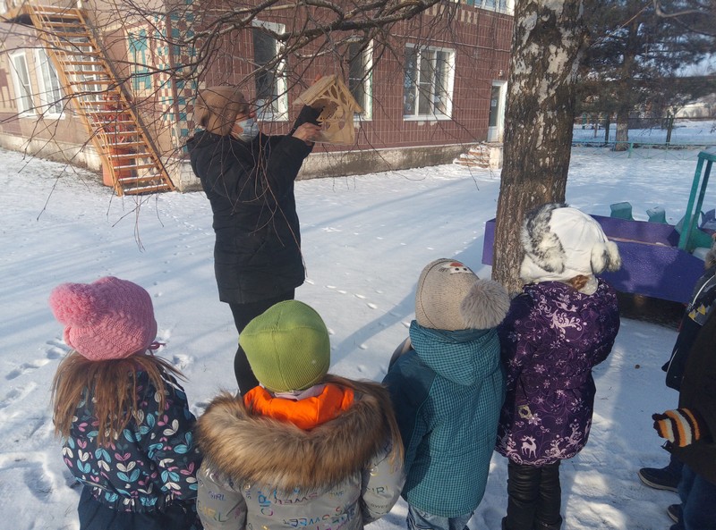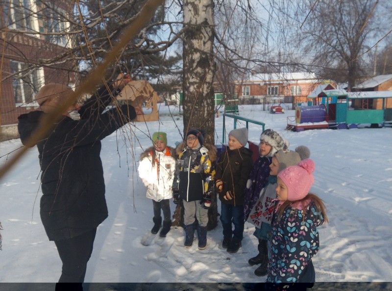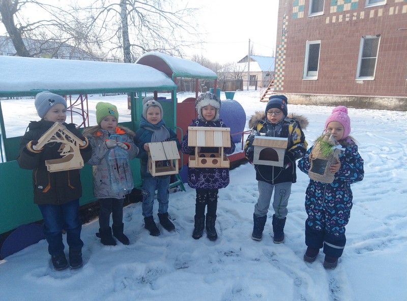 Дети разновозрастной группы №4 «Эколята» МБДОУ №1 д/с «Колокольчик» ежегодно принимают участие в мероприятиях проводимых в рамках Всероссийской акции «Россия-территория «Эколят –Молодых защитников Природы» и природоохранных социально-образовательных проекто в «Эколята-Дошколята», «Эколята», «Молодые защитники Природы» в акции «Покормите птиц зимой». Цель акции: помочь зимующим птицам в нашем селе пережить холодный период. Зимнее время – это не только веселые праздники, оживленное катание с горок, игра в снежки, но и крепкие морозы с пронизывающим ветром. Это самое тяжелое время для зимующих птиц. Перед ними встаёт жизненно важный вопрос, как прокормиться: доступной пищи становится значительно меньше, а потребность в ней возрастает. Иногда естественный корм практически недоступен, поэтому многие птицы не могут пережить зиму и погибают.