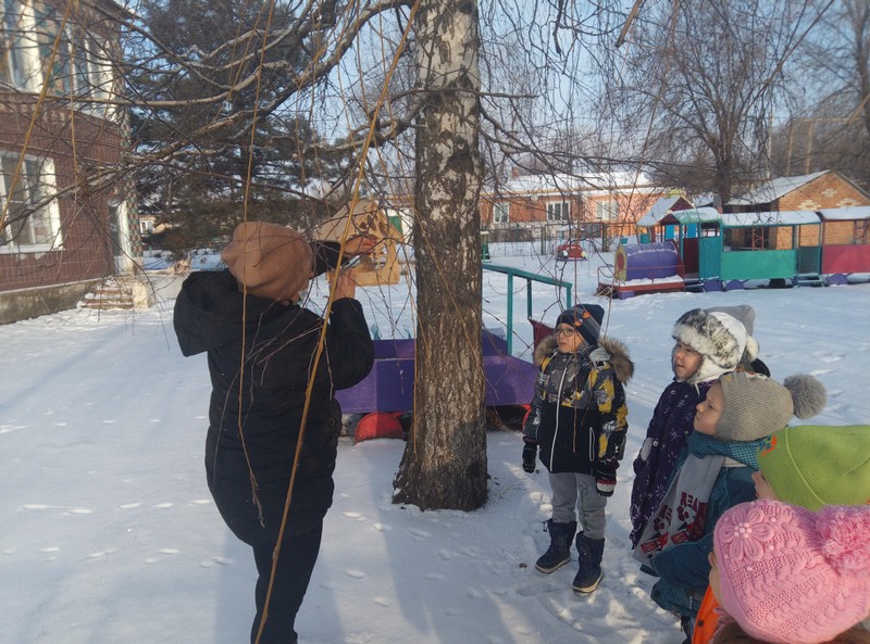 Кормушки были развешены на участке детского сада, чтобы дети в дальнейшем смогли наблюдать за птицами и принимать в их жизни активное участие.