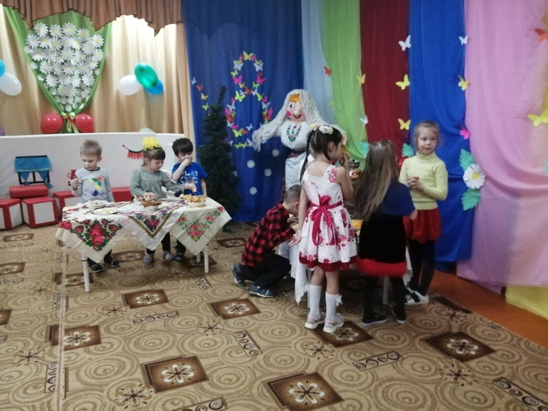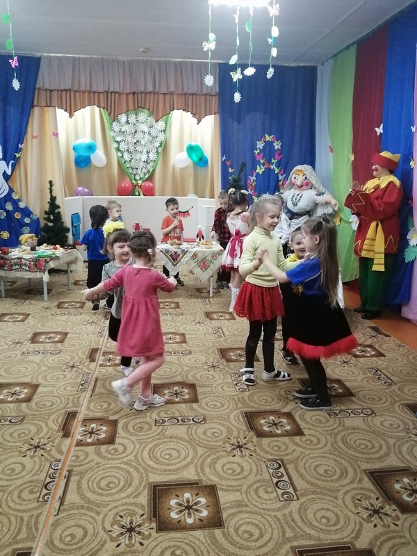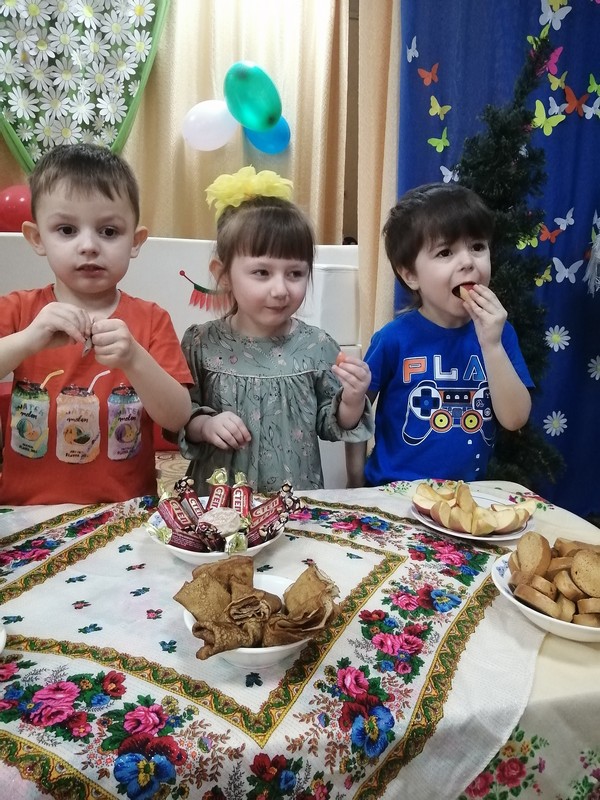 5 марта дети стали участниками Масленичных гуляний. Программа развлечения получилась очень веселой. К ребятам заглянула красавица Весна, Масленица, Зима и Петрушка, которые под звуки русской музыки устроили для всех ребят соревнования. Дети соревновались в смелости и находчивости, силе и ловкости, смеялись. На празднике, дети от души веселились: водили хоровод вокруг масленицы, играли на музыкальных, пели русскую народную песню "Блины" и танцевали. В заключение ребята с удовольствием полакомились вкусными блинами запивая их ароматным чаем.