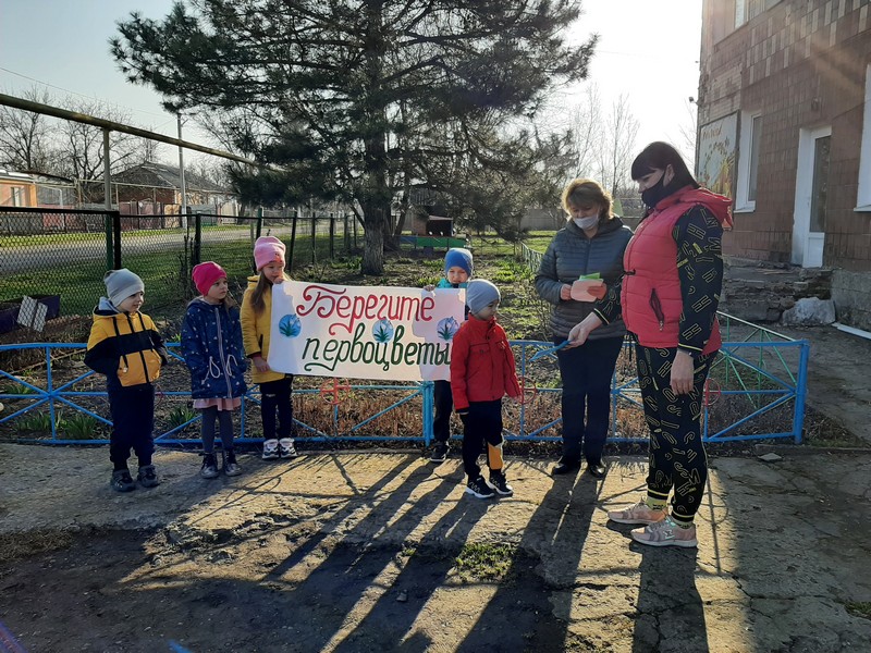 В разновозрастной группе №3 «Солнечные лучики» ,прошла экологическая акция под девизом : «Берегите первоцветы, украшение планеты» Основная цель акции: привлечь внимание к красоте первых весенних цветов, и необходимость беречь и защищать эти хрупкие растения в период цветения.