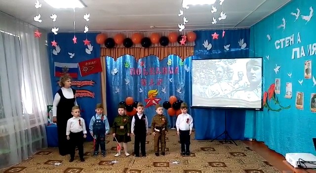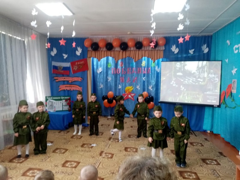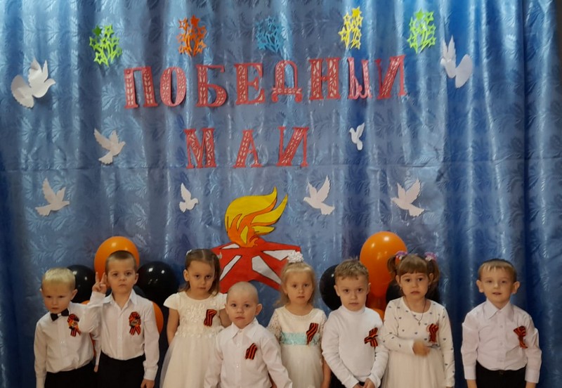 6 Мая в МБДОУ «Колокольчик» был проведен праздничный концерт, посвящённый Дню Победы. Наши ребята во время праздника окунулись в атмосферу военных лет посредством танцев, песен, стихами, что позволяет им четче донести боль потерь и радость победы. Предварительно с детьми в группах проходили занятия, беседы о подвигах советских людей, воспитатели рассказывали о том длинном и трудном пути, который предшествовал этому знаменательному дню. Из бесед и занятий дети узнали о том, как огромная фашистская армия без объявления войны вторглась на территорию Советского Союза. Ознакомились с некоторыми важными событиями, произошедшими во время Великой Отечественной войны, с произведениями художественной литературы, в которых рассказывается о Великой Отечественной войне и ее героях.