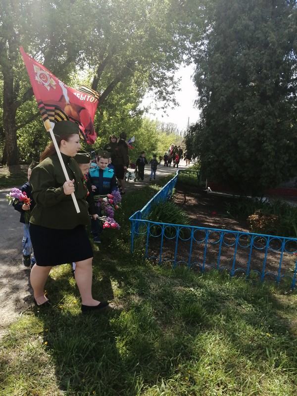 И завершающим событием праздничных мероприятий является, ставшее уже традицией, возложение цветов к памятнику погибшим воинам.