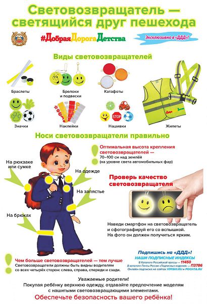 - Световозвращающие элементы (световозвращатели) повышают видимость пешеходов на неосвещённой дорогеи значительно снижают риск возникновения дорожно-транспортных происшествий с их участием.