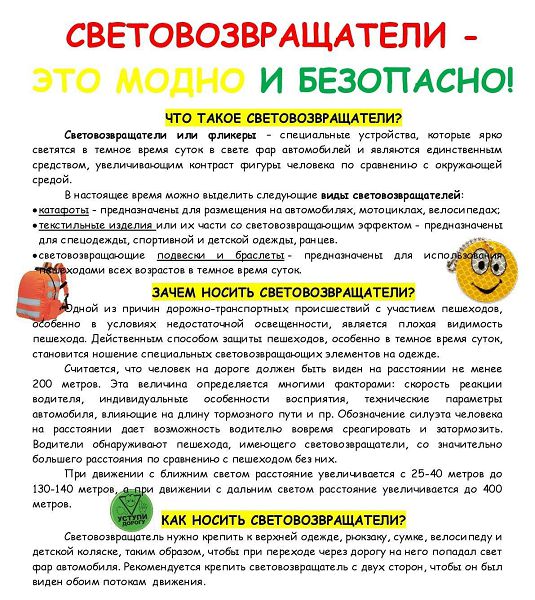 Рекомендации для родителей по использованию светоотражающих элементов в ДОУ:
