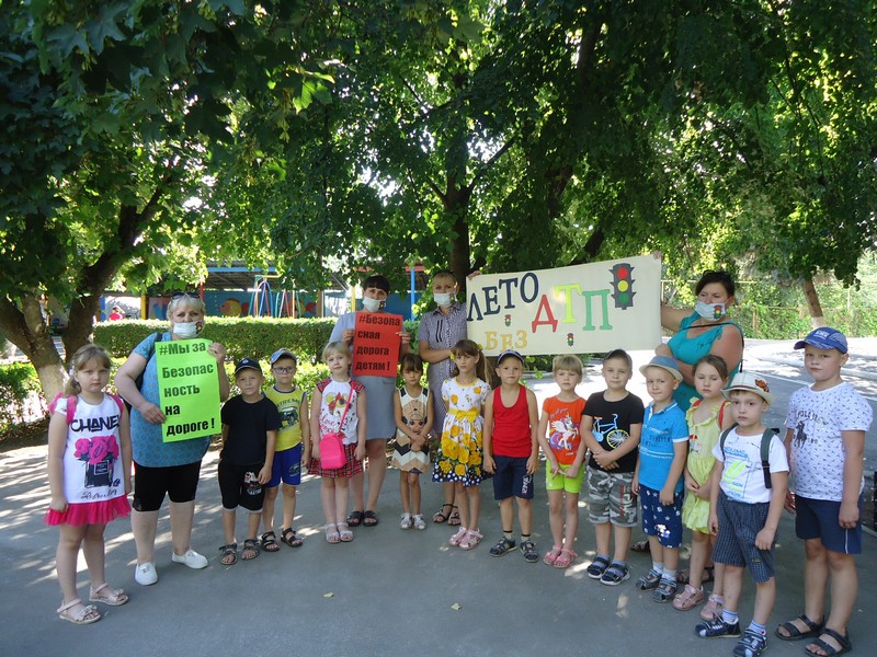 Лето – пора веселья и беззаботности, в особенности для наших детей. В августе на территории МБДОУ №1 д/с «Колокольчик» прошло профилактическое мероприятие «Лето без ДТП» по предупреждению детского дорожного-транспортного травматизма. Цель акции – провести разъяснительную работу среди родителей о необходимости соблюдения правил дорожного движения. Акция была связана с тем, что в Ростовской области резко увеличилось количество ДТП с участием несовершеннолетних.