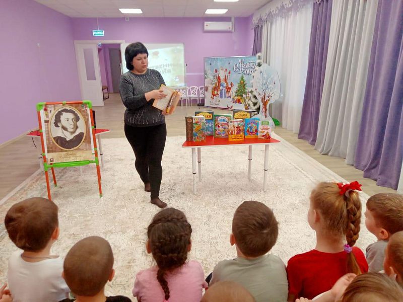 Библиотекарь читального зала детского отдела Ляшенко Ю.В. провела для ребят старшей и подготовительной группы громкие чтения А.С. Пушкина "Сказка о рыбаке и рыбке".