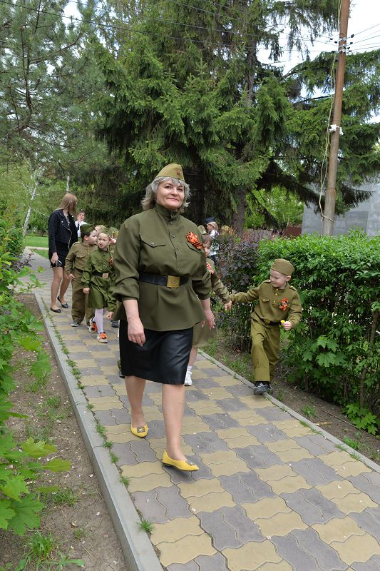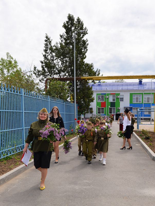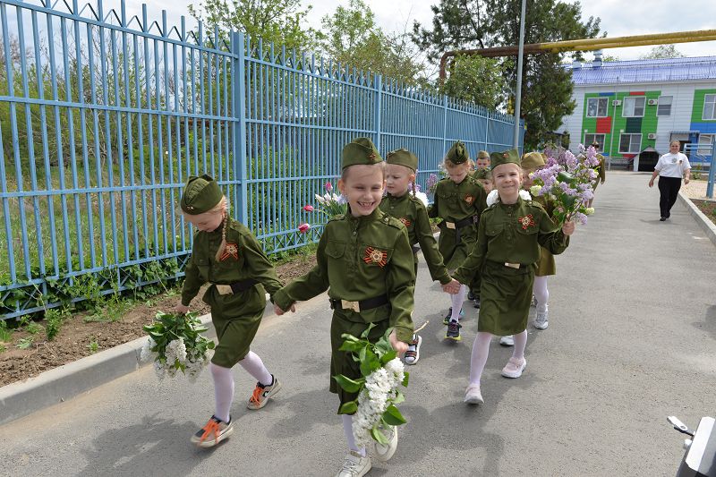 На празднике дети, с чувством особой благодарности, читали стихи, исполняли песни, участвовали в сценках, танцевали. Прекрасная проникновенная музыка песен военной тематики: «Катюша», «О той весне», исполнение песен родителями, танцы: «Синий платочек», « Красные маки» -внесли яркую ноту в это торжественное мероприятие. А также после торжественной части ребята отправились на привал, который находился во дворе уютного детского сада, ребята и гости праздника сняли пробу с солдатской каши. А затем приняли участие в торжественном возложении цветов к вечному огню, в память священного подвига воинов земляков , отдавших свои жизни за честь , свободу и независимость нашей Родины.